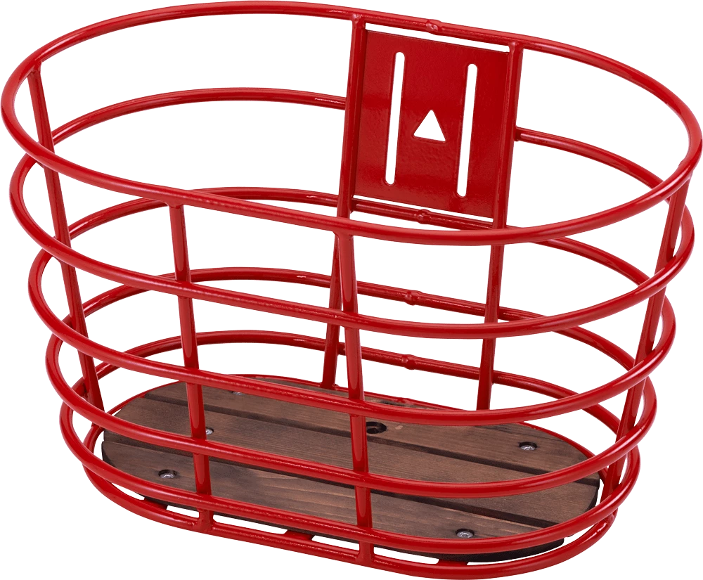 Rød front kurv i aluminium med træbund.