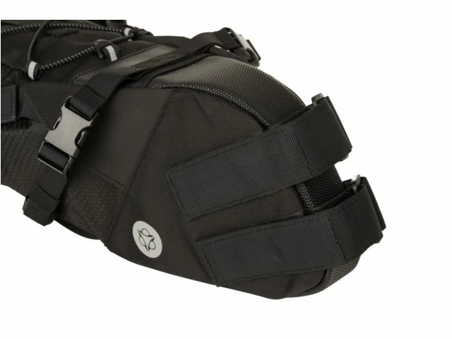 Tasken fastgøres med velcrostropper og har også stropper med quick-release der gør fastgørelsen nem under sadlen.