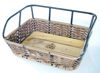 Flot cykelkurv i unikt design, lavet i både træ, aluminium og brun flet.