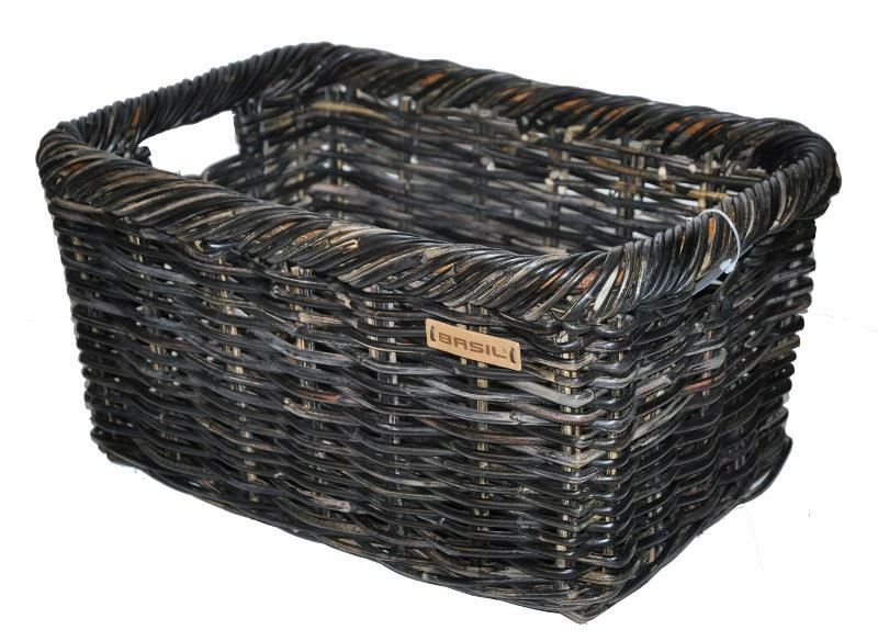 Rektanangulær kurv i flot naturflet, til montering på bagagebærer.