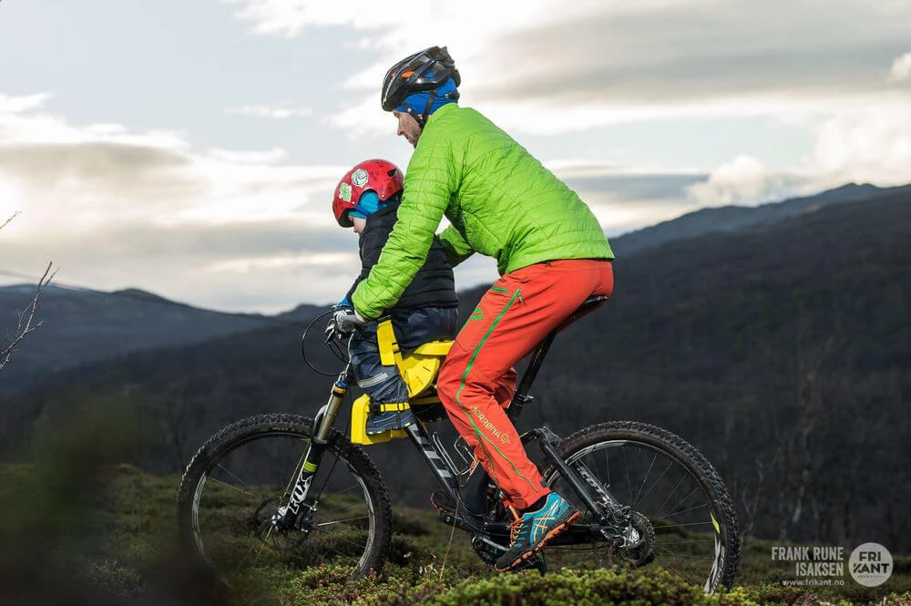 Som fører af cyklen er der også plads til dig, da cykelstolen monteres forrest på overrøret. Det betyder at du kan cykle som du ellers ville. Dette giver også en bedre vægtfordeling da alt vægten nu er mellem hjulene i modsætning til en traditionel barnestol hvor barnet sidder over baghjulet.