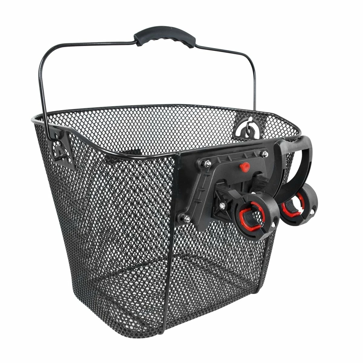 Der er hank på kurven, så den nemt kan tages med ind og handle, eller transportere varerne med ind efter turen.
