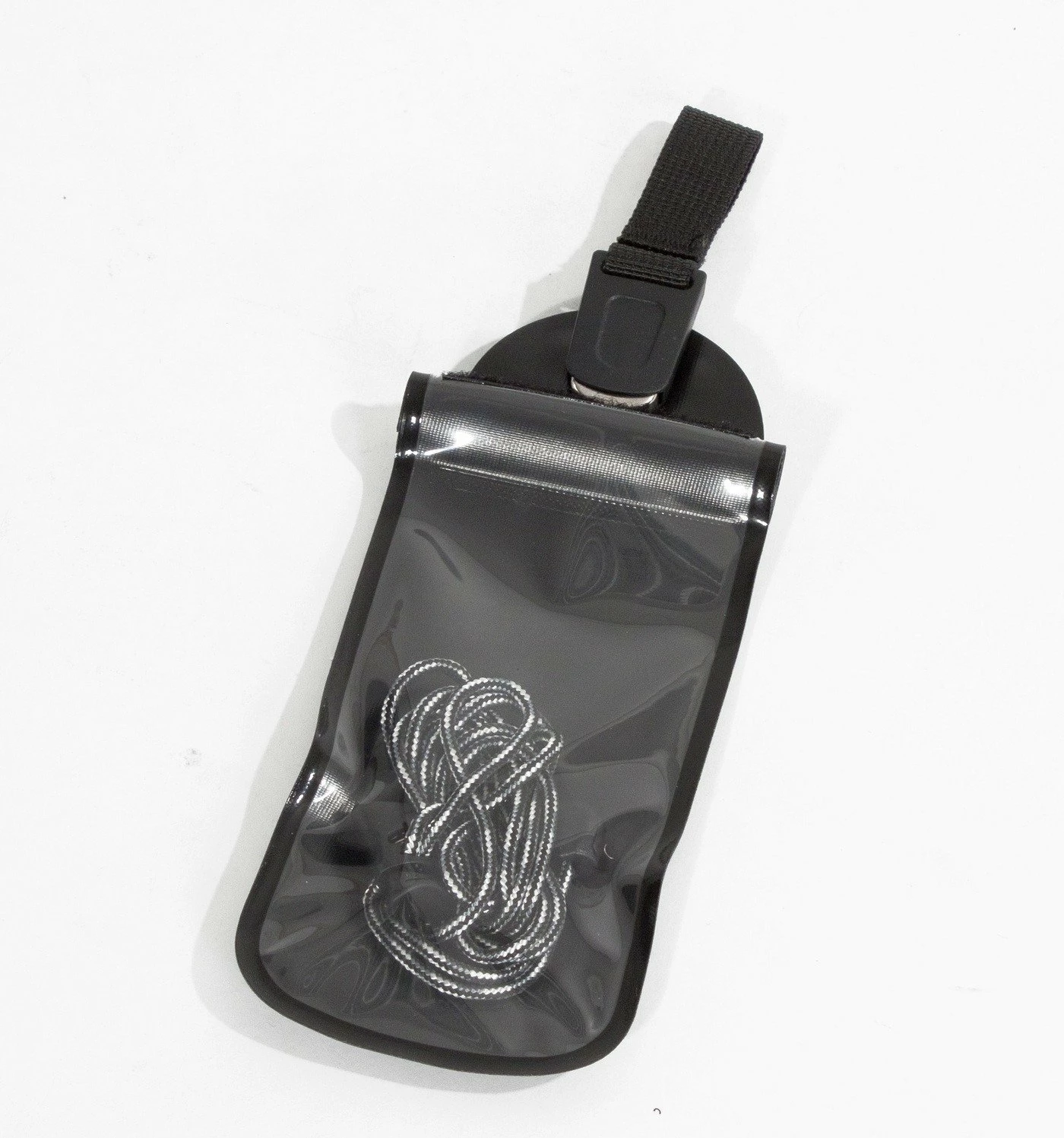 Holderen er vandtæt, der medfølger snor så man kan have den hængende om halsen.